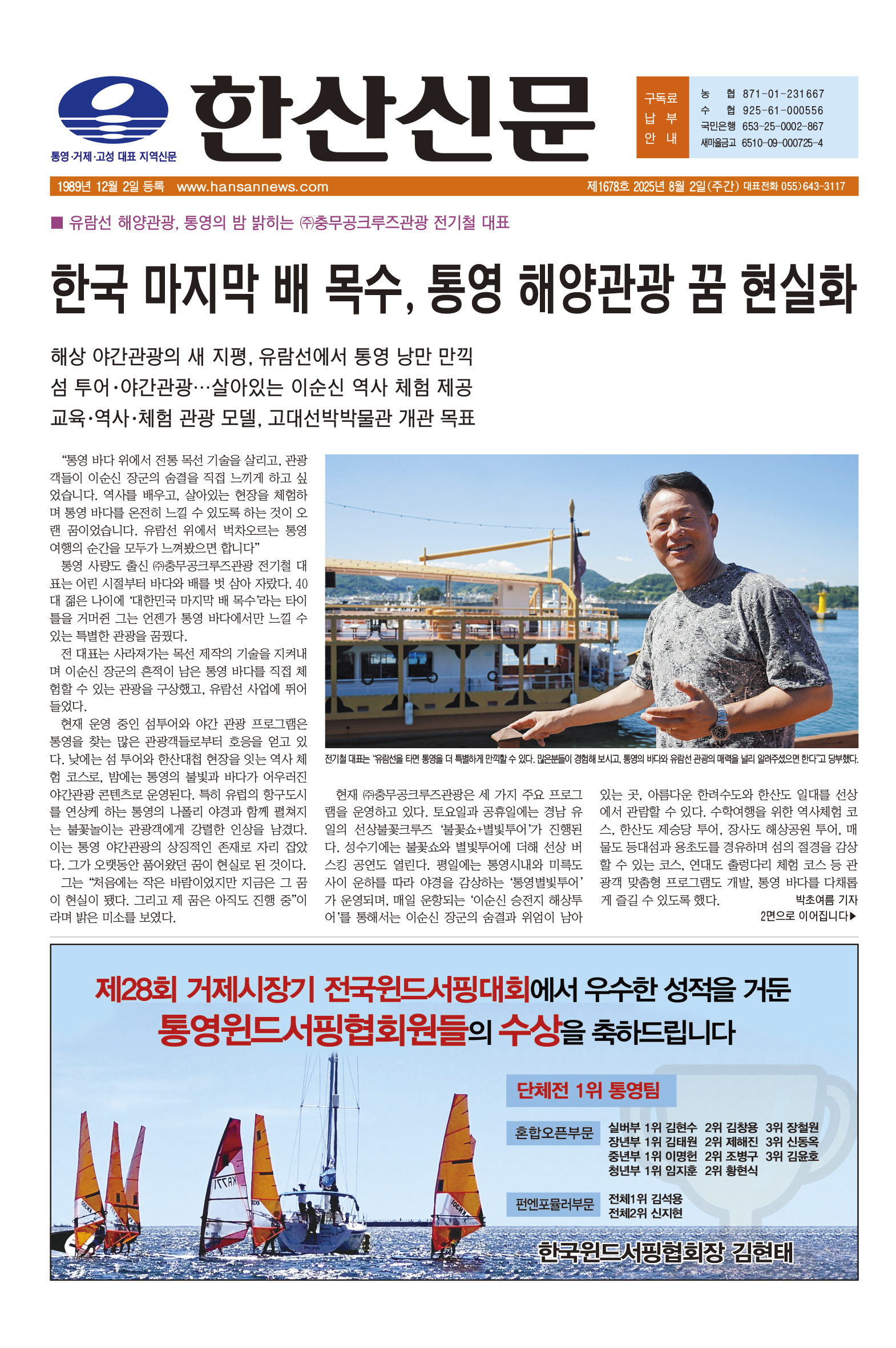 전기철 대표의 40년 장인 정신과 통영 사랑이 담긴 유람선에서, 진짜 통영의 매력을 온몸으로 느껴보세요.
